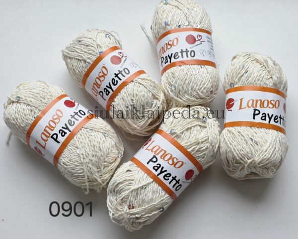 „Lanoso Payetto“ – tai dekoratyviniai siūlai su blizgiais žvyneliais, skirti išskirtiniams mezginiams kurti. Šie siūlai pasižymi malonia tekstūra, lengvu kritimu ir subtiliu spindesiu, kuris suteikia gaminiams elegantišką išvaizdą.
