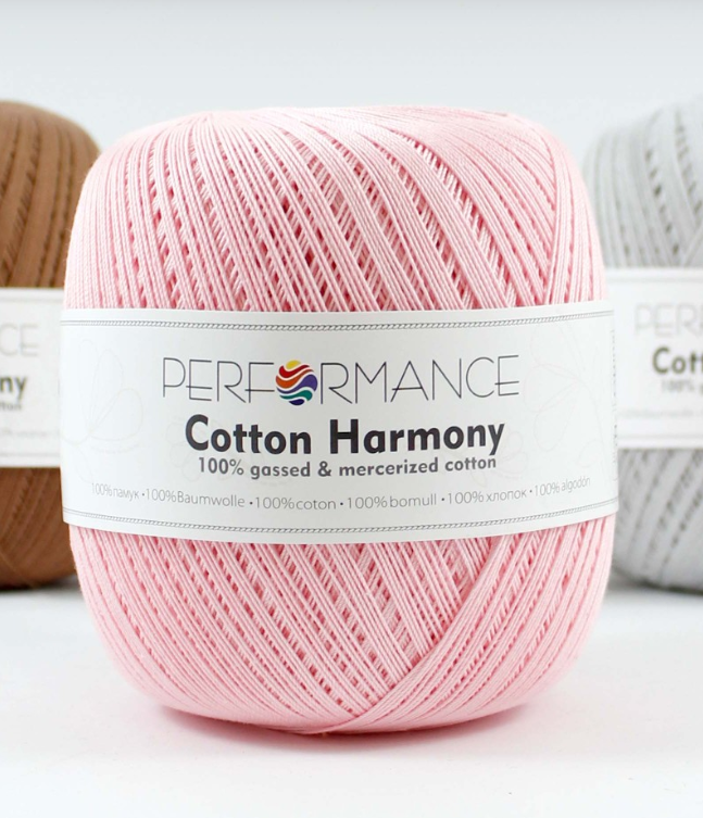 Performance Cotton Harmony – tai aukštos kokybės merscerizuotos medvilnės siūlai, puikiai derinantys natūralumą, tvirtumą ir malonų mezgimą.