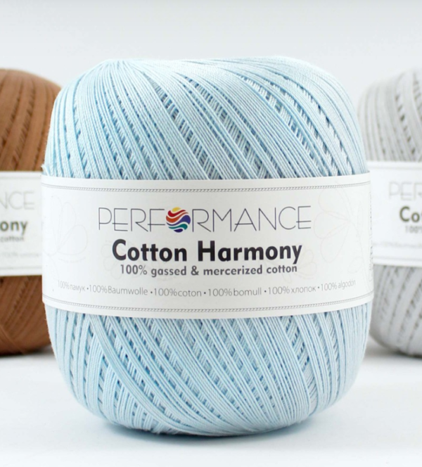 Performance Cotton Harmony – tai aukštos kokybės merscerizuotos medvilnės siūlai, puikiai derinantys natūralumą, tvirtumą ir malonų mezgimą.