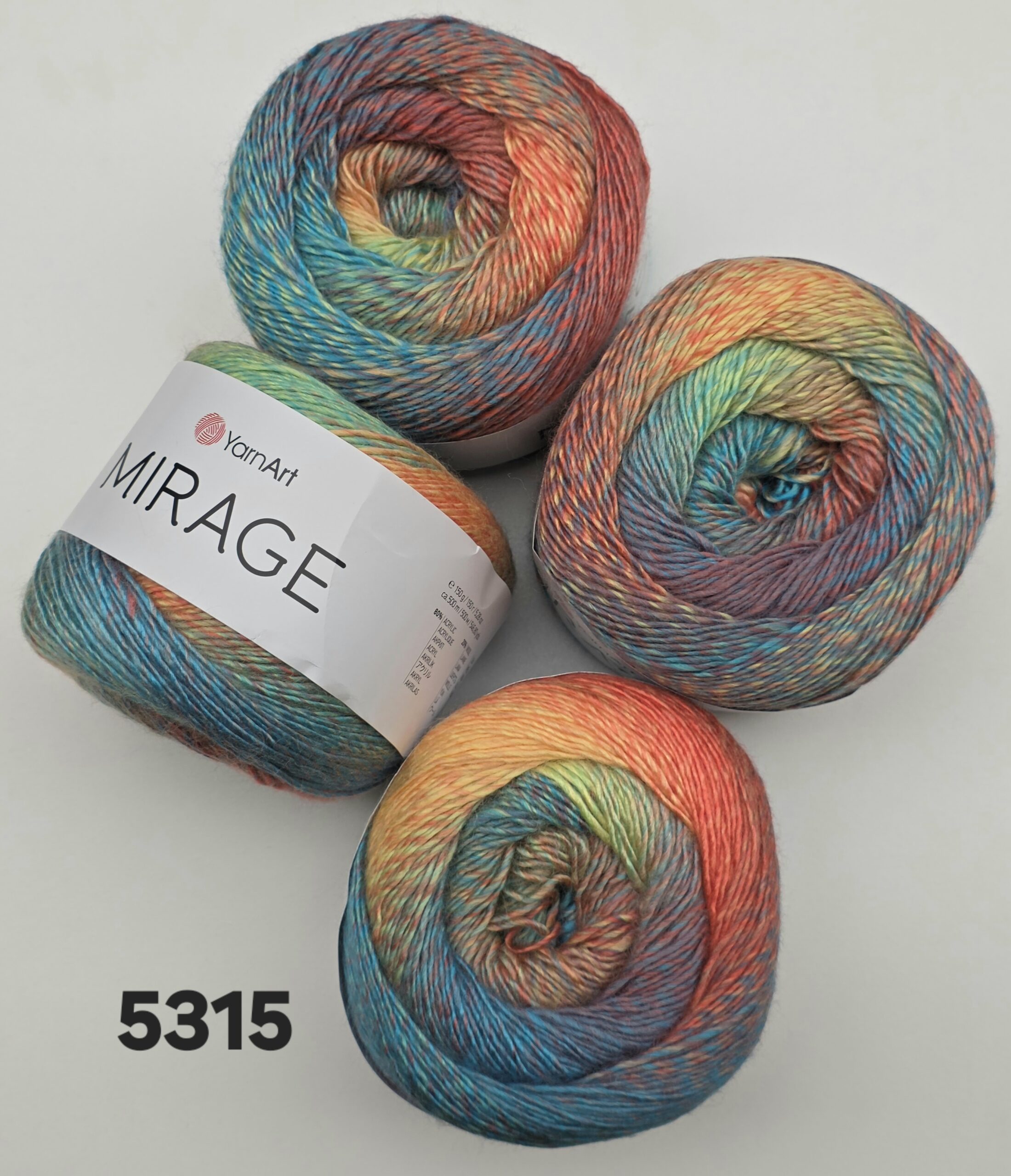 YarnArt Mirage – spalvingi ir švelnūs ploni siūlai mezgimui, derinantys vilnos šilumą ir akrilo lengvumą. Tai itin minkšti ir patvarūs siūlai, kurie puikiai tinka lengviems, spalvingiems mezginiams. Ilgo metražo kamuolys leis megzti didesnius projektus su mažiau jungimų.